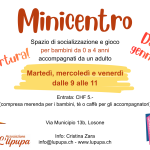 Siamo pronti ad accogliere al Minicentro a partire da gennaio i bambini da 0-4 anni accompagnati da un adulto. Aperture: Martedì, mercoledì e venerdì dalle
