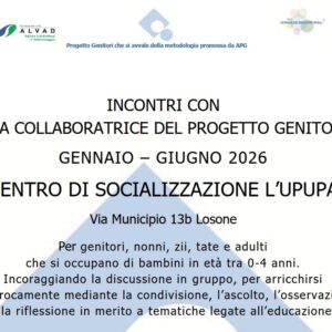 Incontri con una collaboratrice del progetto genitori ALVADPer genitori, nonni, zii, tate e adulti che si occupano di bambini in età tra 0-4 anni. ...